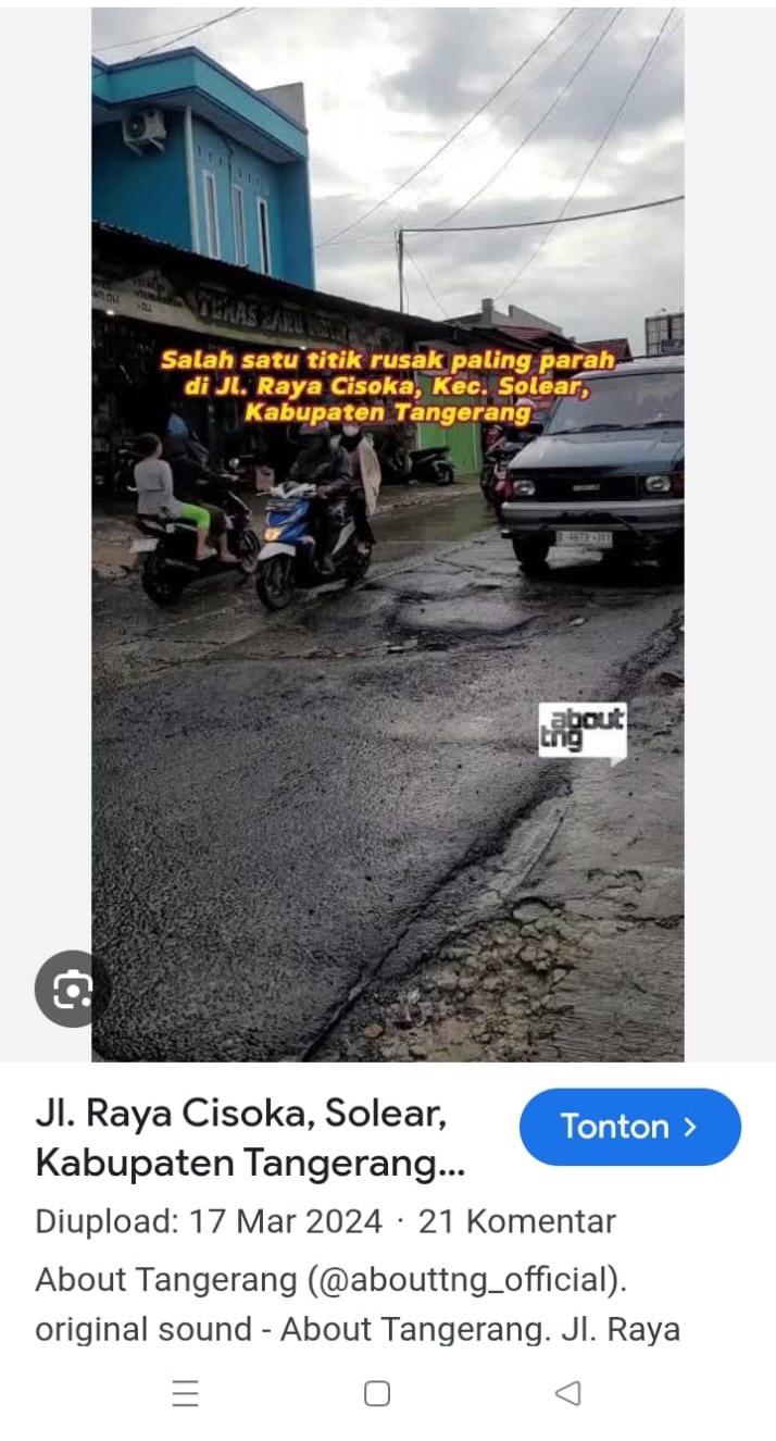 Warga minta pada pihak Bupati Tangerang, jalan raya Cisoka-Solear panjang 4 KM diduga rusak oleh mobil Truk muatan Berat.